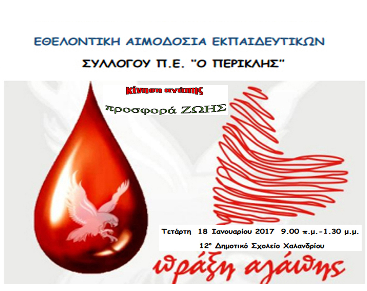 ΥΠΕΝΘΥΜΙΣΗ: Ανακοίνωση συλλόγου για αιμοδοσία [18 Ιανουαρίου 2017]